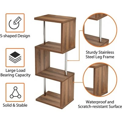 Best deal 💯 Bestier S-Shaped Bookshelf Multifunctional Bookcase Storage Shelf 43 Inch w/ Adjustable Shelves for Kitchens, Living Rooms, and Bedrooms, Walnut 🎁