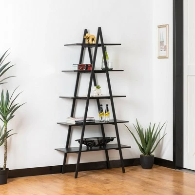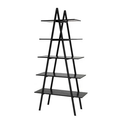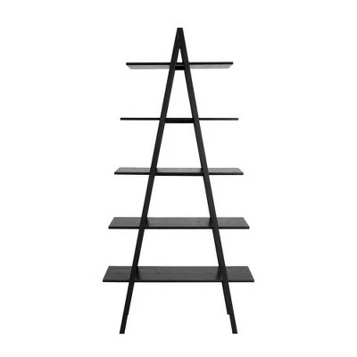 Best deal ❤️ Modern Industry Metal/Wooden 5 Tier ‘A’ Frame Bookcase and Shelves – Glitzhome Black 🌟