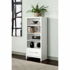 Organize your favorite books, photos, electronic systems, dΓ©cor, and more with this 6-Shelf Bookcase from Closet Maid’s Storage Furniture Collection. The simple and functional design features four (4) adjustable shelves and one (1) fixed shelf, allowing you to configure the space for maximum storage. The full back panel includes cord-management punch-out holes to keep wires tidy, making it the perfect place to store speakers, vinyl record players, and other wired devices. Find the right bookcase for your space with this collection, with four sizes – 3, 4, 5, or 6 shelves, in two finishes – White and Black Walnut.