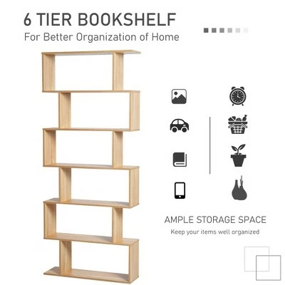 Best reviews of πŸ›’ HOMCOM 75.5″H Bookcase 6 Shelf S-Shaped Bookshelf Wooden Storage Display Stand Shelf Organizer Free Standing Oak πŸ”₯