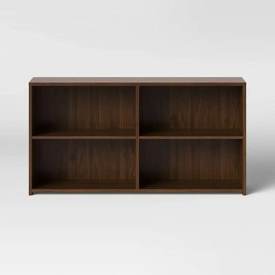 Bring organization to your space and display your books, mementos and pictures in style with this Brannandale Horizontal Bookcase from Project 62β’. Crafted of laminated-finish wood, this horizontal bookshelf features a clean-lined silhouette in a walnut finish that blends effortlessly with any decor style. The four open, adjustable shelves make it an ideal pick to keep your treasured books organized and accessible β from artwork to your favorite novels to picture albums and more β in any area of your home.