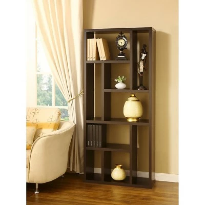 Versatile and functional, the Stanza Open Display Case by Homes: Inside + Out offers uniquely designed shelves to customize the look of your books and decor. Enjoy a chaotic and asymmetrical silhouette that mimics a puzzle look to entice and impress. Meant to be used horizontally or vertically, it functions to your liking while spacious open shelves promote flow and can work as a room divider. With a Cappuccino finish, it elevates your home to sophisticated Modern style.