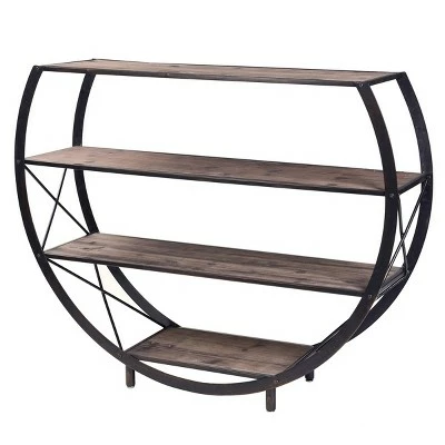 Highlight your space with this Bryan Keith Santa Monica Circle Bookshelf from StyleCraft Home Collection. The perfect place to display your cherished books or knick-knacks. This product has been crafted from wood and metal. Modern decor styles will favor this product. Regardless if you put it in the bedroom or family room, this circle bookshelf stands out as a focal piece. Complete with a wood stain finish, this simple yet on-trend design will lend understated, elegant style to any room. Place it wherever you need extra storage, like the bedroom or foyer. This piece exemplifies superior product design and great styling. It will pair well with mid-century modern styling.