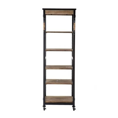 Coupon 🌟 72" Wooden Bookshelf with 5 Cases and Casters Brown – Benzara 🌟