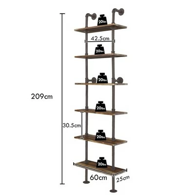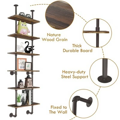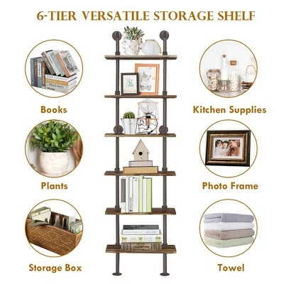 Deals 🛒 Costway 6-Shelf Rustic Pipe Shelving Unit, Vintage Industrial Pipe Wall Shelf Brown 🎉