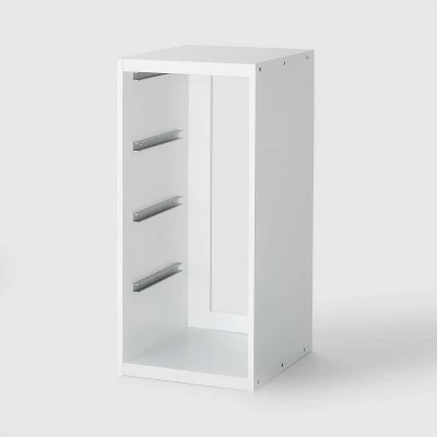 Maximize your home’s available storage space with this Short Sliding Bin Cube from Brightroom™. It’s built to fit bins and baskets that easily slide in and out of place, and the durable wood and aluminum construction keeps it sturdy. You’ll assemble it in no time with the included hardware tools. It comes in two neutral finishes to coordinate with a range of furniture styles.