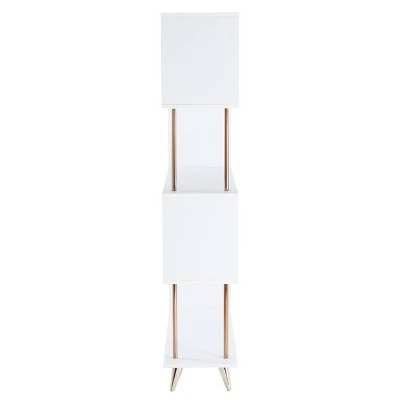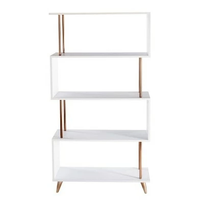 Give boring style the runaround with the Aiden Lane Bucklon Asymmetrical Etagere. Five open shelves offer plenty of room for your book collection or sentimental knickknacks, while the back-and-forth design creates movement and visual interest. Invite a retro touch into your space with classic tapered legs and a two-tone color scheme. In your home office or open concept living space, this tiered bookcase adds unique flair to your modern style.