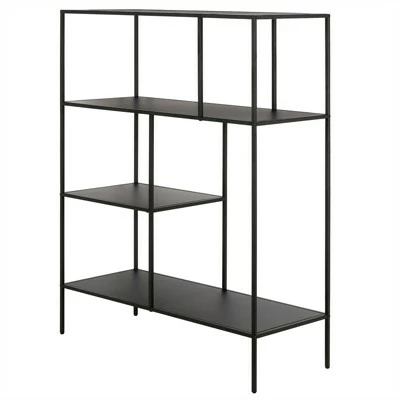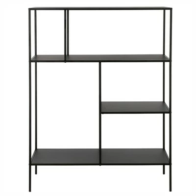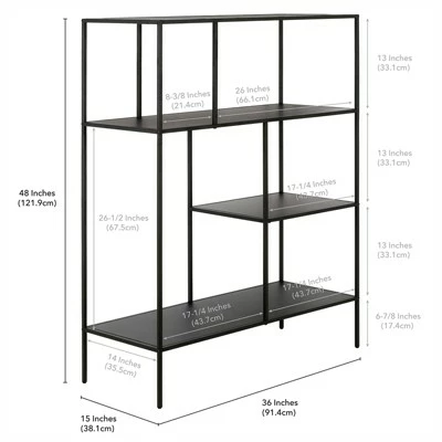 Showcase your favorite books and decorative items with this 48″ bookcase. Crafted from steel, it strikes a clean-lined silhouette thatβs equally at home in a contemporary living room or industrial home office. It boasts a neutral metallic finish and staggered metal shelves for a look that blends with nearly any color palette.Features : Handcrafted finish is applied to the steel frame.Frame and shelves are made of steel.Top has a weight capacity of 25 lbs.Middle shelves have a weight capacity of 30 lbs each. The bottom shelf can hold 40 lbs.Features easy assembly.Specifications : Product Dimensions : 15″ x 36″ x 48″Product Weight : 35.71 lbs