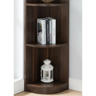 Add functionality to unused corner space with the Maleena 5-Shelf Corner Bookcase. Evenly spaced shelves are smooth and rounded providing additional storage space for decor, books, and more. Crafted from MDF, Veneer, and solid Wood for durability and a lasting product, it provides a steady and solid foundation to fit your needs. Try placing this dark walnut finished furniture piece next to a contrasting colored background for a cheery pop of color.Features : Includes: One (1) Corner BookcaseStyle: ContemporaryFinish: Dark WalnutMaterials: MDF, Wood VeneerSmooth rounded bodySpacious open shelvesFlat rounded baseSpace-efficient corner designEasy to follow step by step assembly guide includedSpecifications : Product Dimensions : 12″W x 12″D x 77″HProduct Weight : 49 lbsWeight Capacity : 40 lbsAssembly Required : YesWarranty Description : 90-Day Manufacture Limited Replacement Parts Warranty