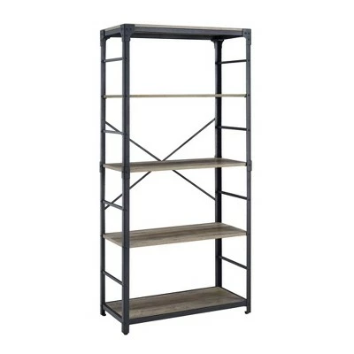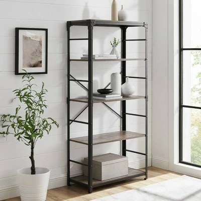 Whether you want to add a masculine element to your bohemian inspired space or capture the spunk of a raw-material look, this metal and wood vertical shelf can deliver on your design dreams while increasing your storage capabilities. With four open shelves, this 64-inch storage unit functions as a bookshelf, media tower, or display shelf. Unit accents include: lateral metal bars, angled brackets at the top, and a thin metal X detail. Plus, this industrial piece comes with wall-fastening for extra stability so if your house is the party place, you and your friends can bust a move worry free.