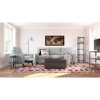 If your living room is lacking storage space for displaying your favorite room accent pieces or a collection of books, the Serta Overland Bookshelf will remedy this situation. This bookcase has four tiers that are large enough to hold books, framed photographs and many other room decor pieces. The sturdy black metal frame is a nice contrast to the rustic wood grain shelves and the natural tones will not overshadow the items placed on the bookshelf. The piece is tall but has a small footprint making it a nice storage solution for small spaces. Bring home classic American charisma with the Farmhouse living room set from Serta. Due to natural materials, color variation and unique wood details are to be expected and celebrated.