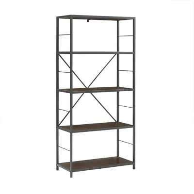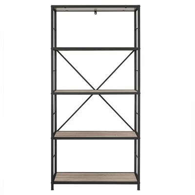 Showcase your best books, marvelous magazines, and dazzling dรฉcor with Saracina Homeโs rustic industrial X-back bookcase. Use the five shelves anyway you like! Stage the bookshelf in your home office, bedroom, living room, or even the kitchen. Fill the open shelves with house plants, office supplies, or media components. Turn a wall into a library or make a home for your favorite pottery vases. Youโll wonder how you ever went without such a chic bookshelf.