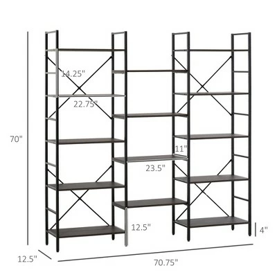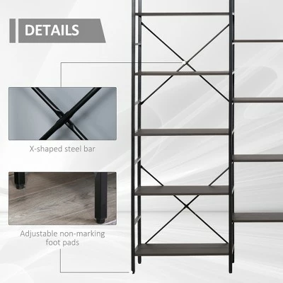 Our HOMCOM wooden bookcase combines two 5-tier bookcases and 4 connecting boards, which offer lots of open shelves for displaying daily supplies and office accessories. The neutral color with industrial design makes it an all-matching piece of furniture that fits the living room or home office. The reinforced X-shaped steel bar is for added strength, and with the anti-toppling device, you don’t have to worry about it falling over. This HOMCOM corner bookshelf is ready to suit all your storage needs.