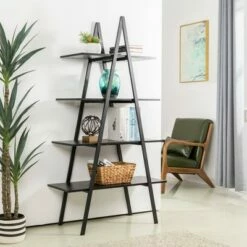 Best Pirce ⭐ Lavish Home 5-Tier Ladder Bookshelf – Leaning Decorative Shelves, Black ⭐
