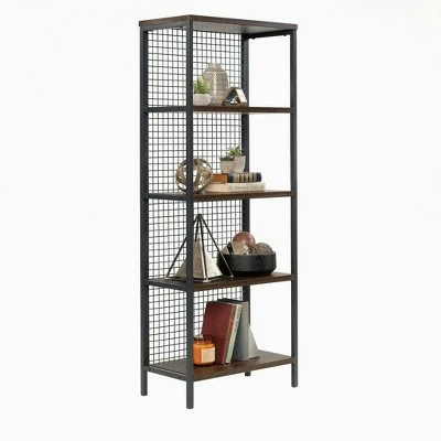It’s time for an in-home makeover. Give your home a fresh new look when you add a touch of industrial-inspired style paired with the functional design of this bookcase from the Market Commons collection. This 4-shelf bookcase features a strong and lightweight 1″ panel construction that will make it easier to move when you decide to move it to a new spot in your home. The four large open shelves are ideal for storing a variety of different items like books, magazines, organizing bins and so much more! These spacious shelves also make a great spot to display home dΓ©cor items like decorative plants, your favorite knick-knacks and photos of your family and friends. Its versatile design and charming good looks make this metal bookcase the perfect addition to any room in your home. Its durable, powder coated metal frame and wire mesh back make this modern bookcase stand out no matter where it is. Finished in Rich Walnut, this storage bookcase is everything you need and more.