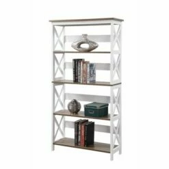 Wholesale 🤩 60″ Oxford 5 Tier Bookcase – Breighton Home Driftwood/white ❤️