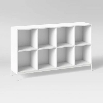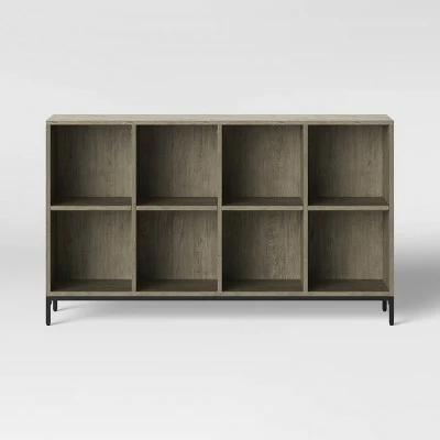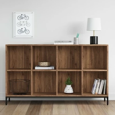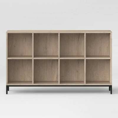When you’re in search of an easy storage solution, stick with the sleek, modern style of the Loring Eight-Cube Bookcase from Project 62β’. This rectangular bookshelf keeps sleek lines with the eight square cubbies and metal frame, while the wood finish brings a natural twist. Use it to hold books and photos in the living room or as a unique alternative to a dresser in your bedroom.