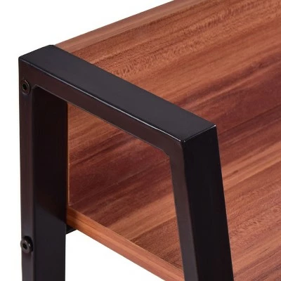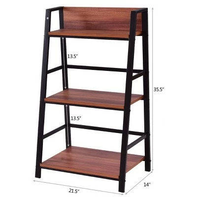 This is our 3-tier display shelf. It has a great design. It has three tiers. The top shelf is the smallest one and the bottom shelf is the biggest one. It has a big advantage that its top shelf has a back board, which helps to hold things placed on it. This display shelf is very useful, on which lots of things can be placed. For instance, you can put your books, vases, ornaments and other things on it. There is enough space for you to store your things. This display shelf is a good organizer for you. By using it, you can make your home neater and more compact. This display shelf is made of iron, which makes it become more sturdy and stable. You do not need to worry about its safety. Do not hesitate! Come and buy this fine display shelf! You will have a wonderful home decoration! Specification: Material:Steel + MDF. Overall Size:21.5”X14”X35.5”(LXWXH). Distance between each shelf:13.5”. Product Weight:17.1lbs. Max loading weight capacity:220lbs. Package Include:1 X Display Shelf.